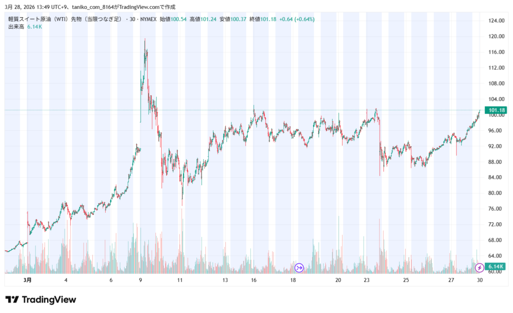 それから1か月。停戦はまだない。原油価格(WTI原油先物)は100ドルを超え、為替は本日3月28日時点で160円台と、さらに円安が進んでいる。
